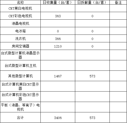 2025年08月21日废弃电器电子产品收集处置日报表