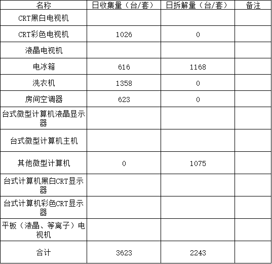 2025年10月11日废弃电器电子产品收集处置日报表