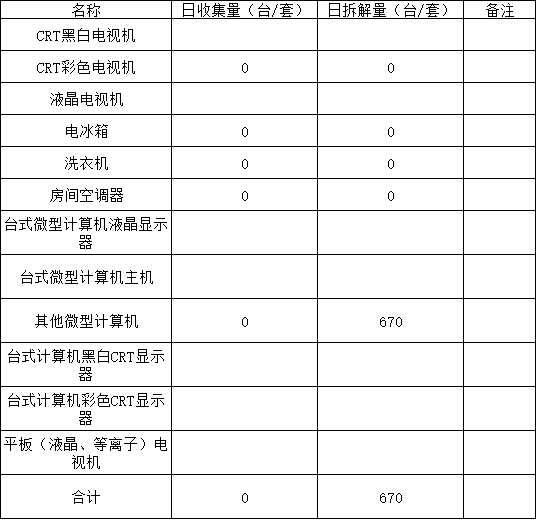 2026年01月04日废弃电器电子产品收集处置日报表