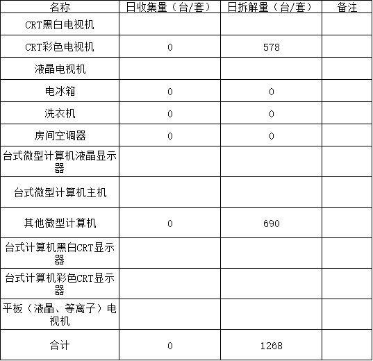2026年01月06日废弃电器电子产品收集处置日报表